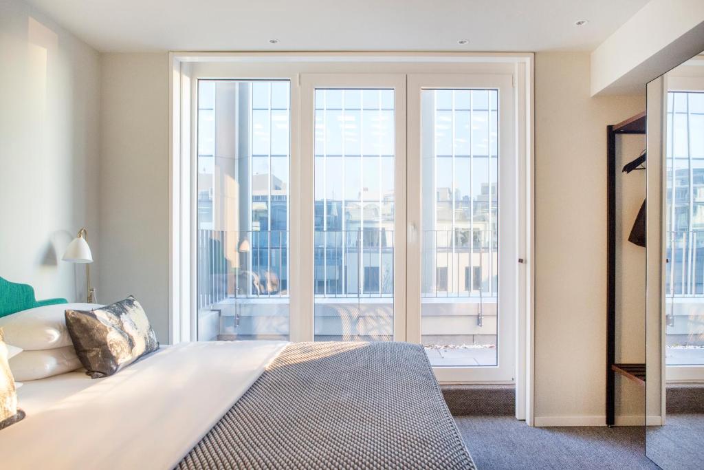 Odzwierciedlając precyzję Düsseldorfu, hotel łączy niemieckie wzornictwo przemysłowe z francuskimi wpływami, na które wskazuje jego nazwa. Pokoje przeplatają się między eleganckim, kolorowym stylem niemieckiego industrialu a cieplejszymi akcentami francuskimi inspirowanymi stylem śródziemnomorskim. Wszystkie są eleganckie, wygodne i wyposażone w systemy audio Bluetooth.