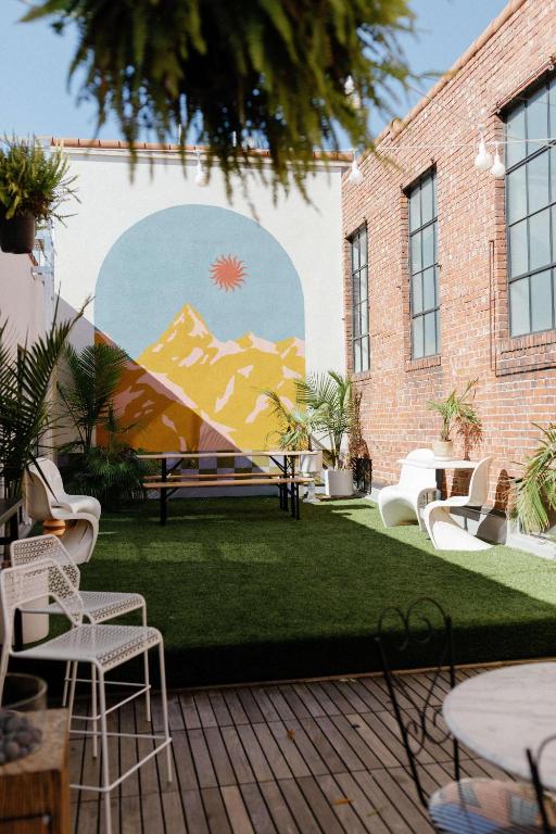 Żaden pokój nie jest taki sam – każdy zaprojektowano w stylu bohemy-chic i zapewniono w nim mnóstwo naturalnego światła. Wnętrza charakteryzują się odsłoniętą cegłą, sufitami z drewnianymi belkami, dużymi oknami z przewiewnymi zasłonami oraz roślinami doniczkowymi, łącząc elementy stylu mid-century modern z zabawnymi dodatkami, takimi jak kule dyskotekowe, bambusowe stołki i wiszące wiklinowe krzesła.