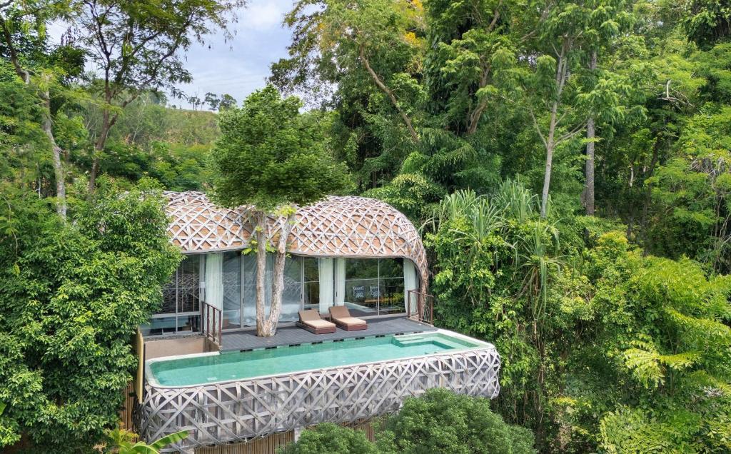 Wolnostojące wille nawiązują do plemiennych siedzib: wille „Tent Pool Villas”, inspirowane koczowniczymi ludami lasów deszczowych, charakteryzują się kopułowymi dachami i podwyższonymi owalnymi wannami. Domki „Tree Pool Houses” odzwierciedlają styl plemienia We-ha, znanego jako „klan nieba”, dzięki dwóm poziomom i zawieszonym meblom. Domki „Clay Pool Cottages” nawiązują do tradycyjnych tajskich chat krytych strzechą. Wille typu „Bird’s Nest” przypominają plecione klatki dla ptaków z drewna i szkła, z widokiem na morze i las.