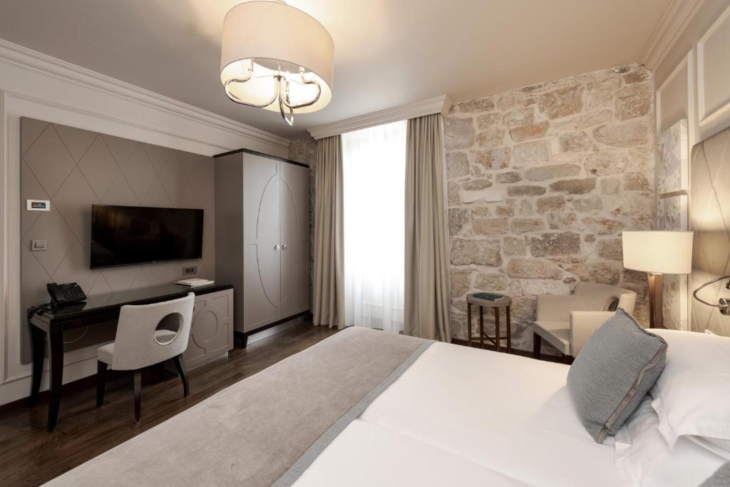 Ten butikowy hotel oferuje 27 pokoi i apartamentów utrzymanych w stonowanych odcieniach szarości i bieli, z akcentami w postaci ręcznie wykonanych mebli i podłóg z drewna tekowego. Goście mogą cieszyć się nowoczesnymi udogodnieniami i delektować się posiłkami w restauracji Kaštel, gdzie królują dania kuchni śródziemnomorskiej i lokalnej, zwłaszcza na tarasie z panoramicznym widokiem.